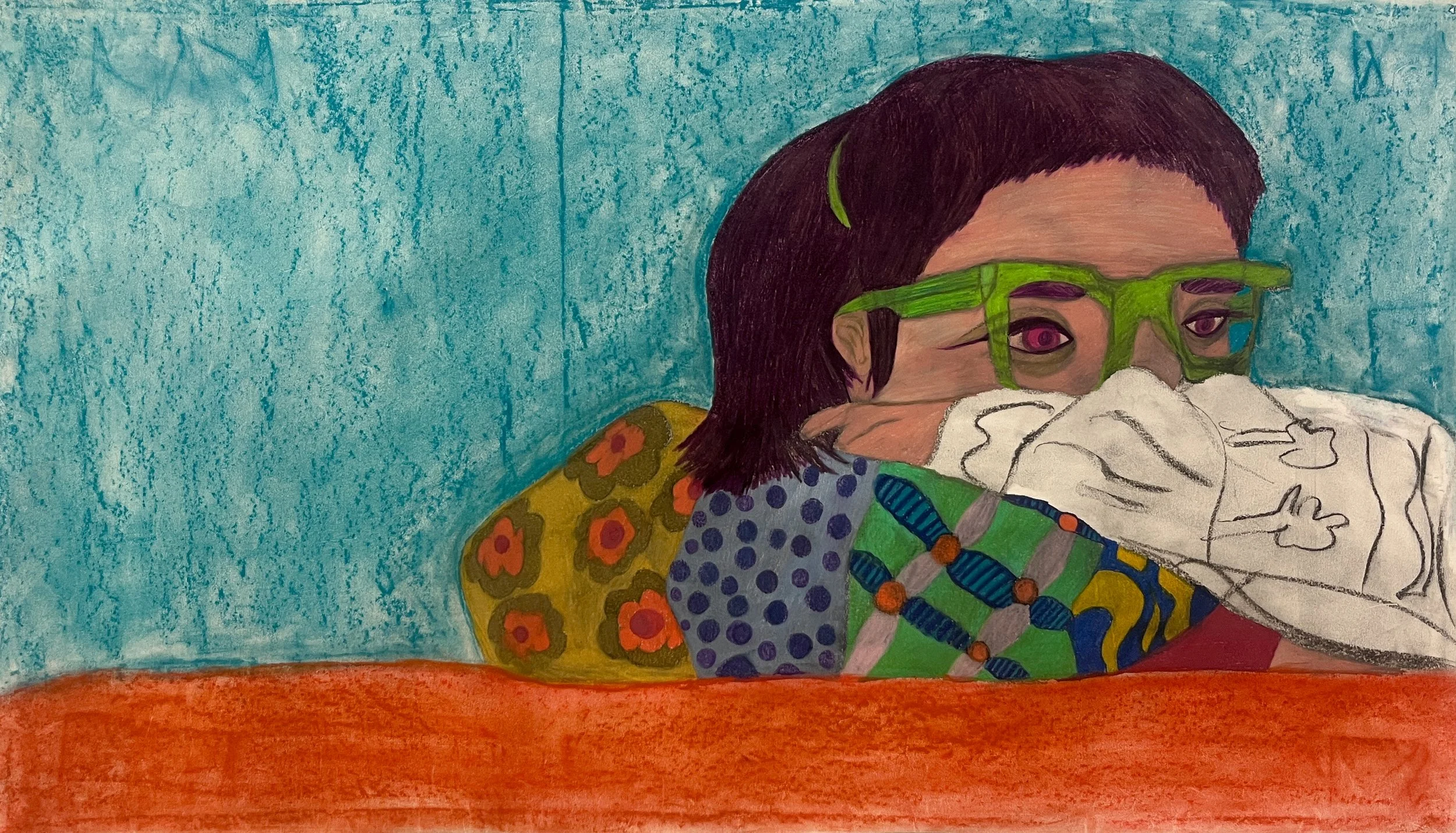 Above: “The people who love me also erase me” (April 2025) - Pastel, charcoal, and colored pencil, 42 inches x 24 inches