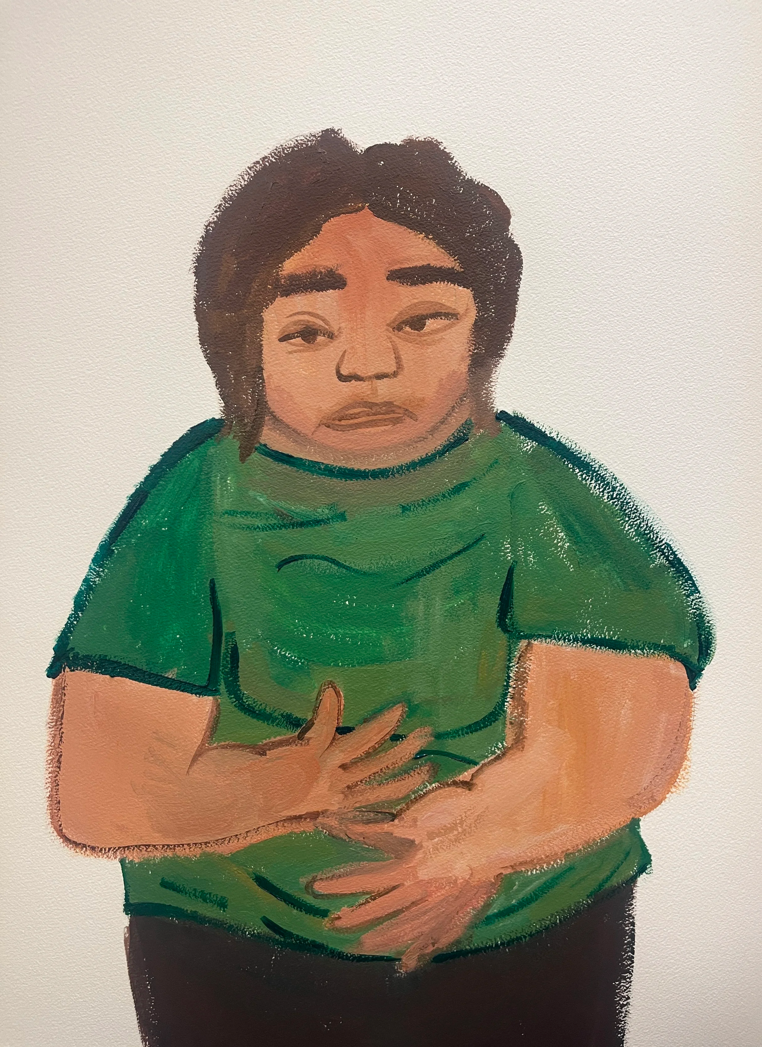 Muffintop (2025), acrylic paint on watercolor paper, 22 × 30 inches